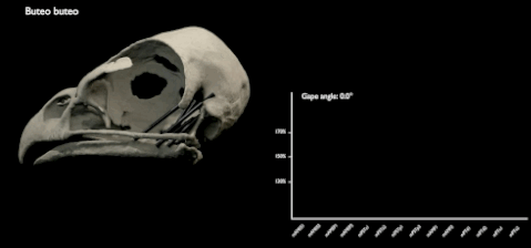 普通鵟(Buteo buteo)张嘴时的肌肉拉紧情况。图片来源:Stephan Lautenschlager, University of Bristol